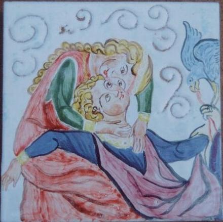 Ecco due esempi di uno stesso soggetto eseguito su una mattonella di ceramica (secondo fuoco) e una piastra di porcellana (terzo fuoco)